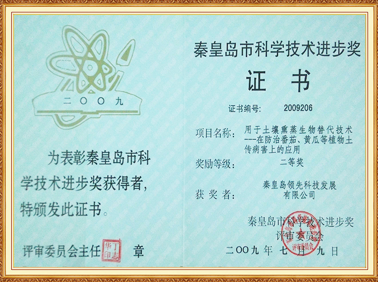 土壤熏蒸在防治番茄、黃瓜土傳病害上的應(yīng)用—秦皇島科學(xué)進步二等獎