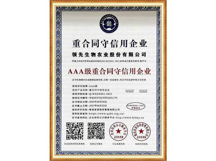 AAA級(jí)重質(zhì)量守信用企業(yè)